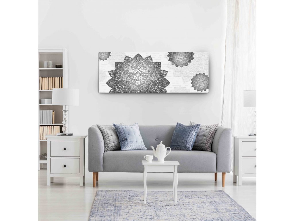 Šedé odstíny mandaly na jednodílném obraze vám navodí příjemnou náladu. Oblíbený motiv, který se hodí téměř všude. Neudělte chybu pokud jej pověsíte do místnosti, kde rádi odpočíváte a meditujete.
