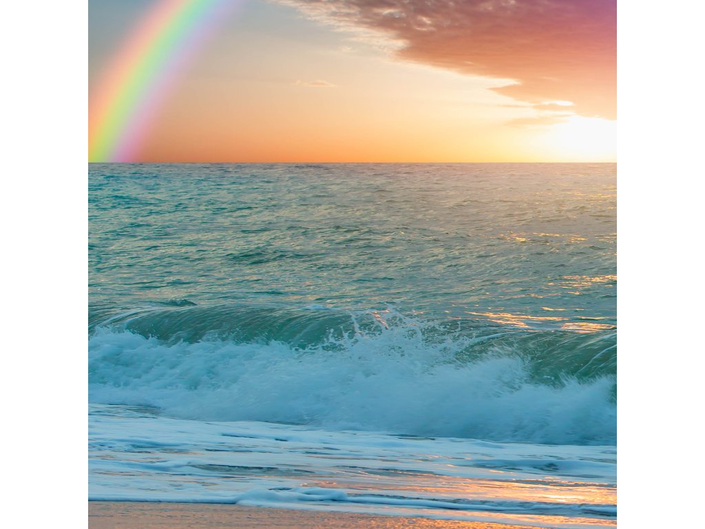 Pestrobarevný obraz duhy nad mořem, který vám dodá pozitivní atmosféru. Obrazy s vysokou kvalitou tisku a rychlým doručením.