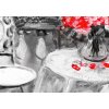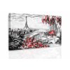 Digitální malba Paříže s Eiffelovou věží v černobílém provedení s červenými akcenty doladí váš pokoj.