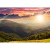 Krásný tištěný obraz na plátně s romantickým západem slunce nad horskou krajinou. Překrásné barvy navodí uvolněnou atmosféru doma i v kanceláři.