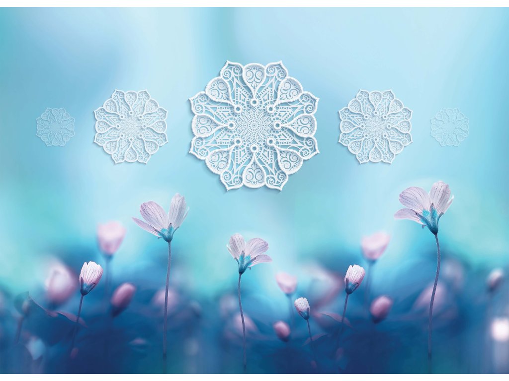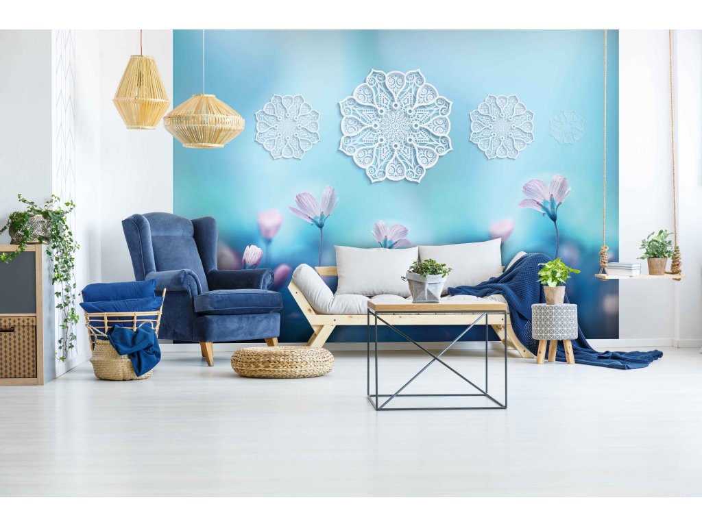 Úžasná tapeta z vliesového materiálu, která zaujme nejen krásou rozkvetlých lučních květů, ale také plastickými mandalami v bílé barvě. Originální tapeta, která zpestří váš byt.