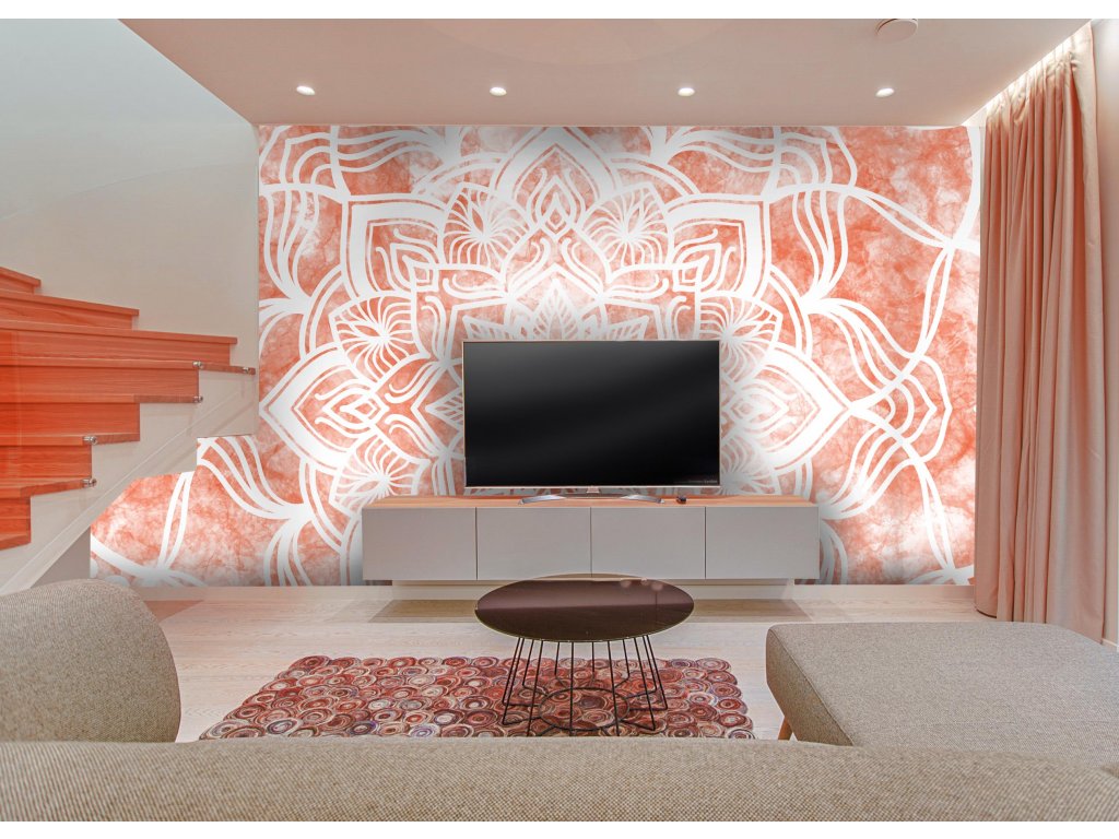 Vliesová tapeta s oranžovou mandalou je krásnou dekorací, která podtrhne přírodní tóny vybavení u vás doma.
